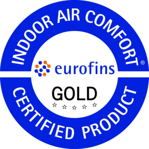 Eurofins Indoor Air Comfort er en innovativ certificeringsordning, som bevidner, at et produkt overholder de lave VOC emissionskrav, der er fastsat i Europa. GOLD-certificeringen er det højeste niveau i ordningen og garanterer overholdelse af emissioner i henhold til alle lovmæssige specifikationer udstedt af myndighederne i EU.